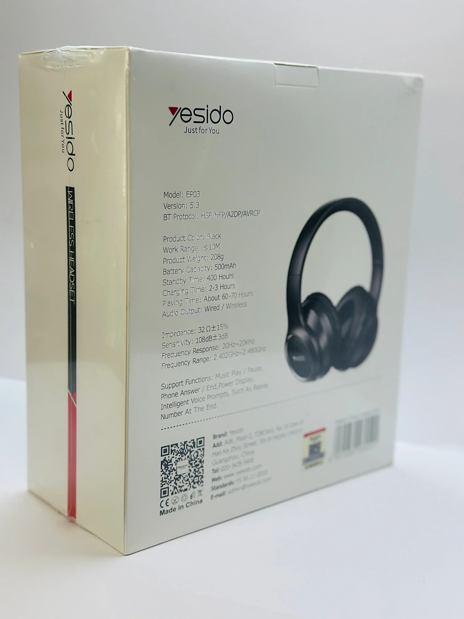 هدفون بلوتوث یسیدو مدل EP03 با بلوتوث 5.0 و عمر باتری ۱۲ ساعته. تجربهای عالی از صدا و راحتی.