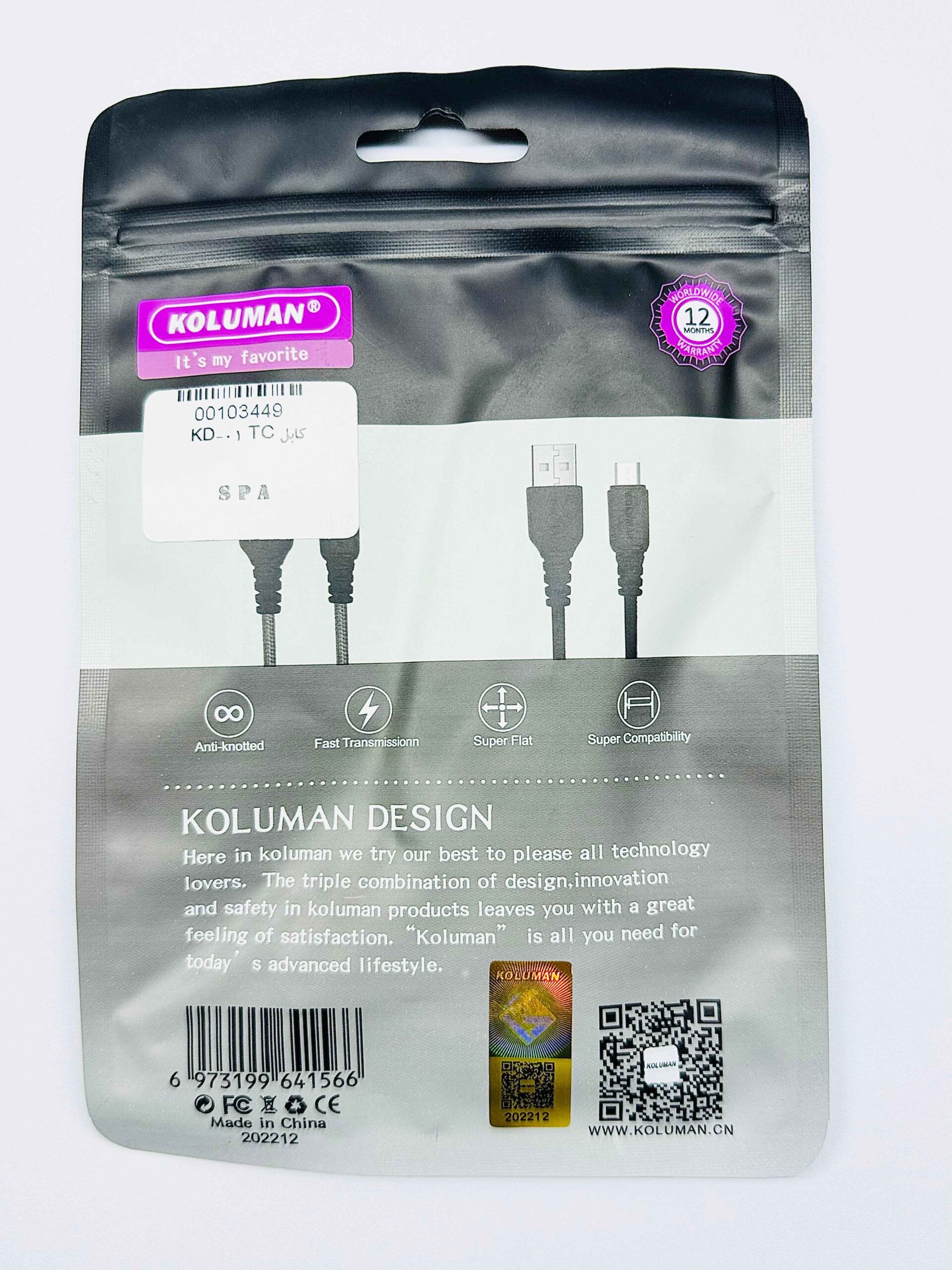 کابل Koluman KD_01 با طول استاندارد خود، راحتی استفاده را در منزل، محل کار یا خودرو فراهم میکند. این کابل قابلیت انتقال جریان تا 3 آمپر را دارد و با بیشتر گوشیهای اندرویدی جدید، تبلتها و حتی برخی لپتاپها سازگار است.