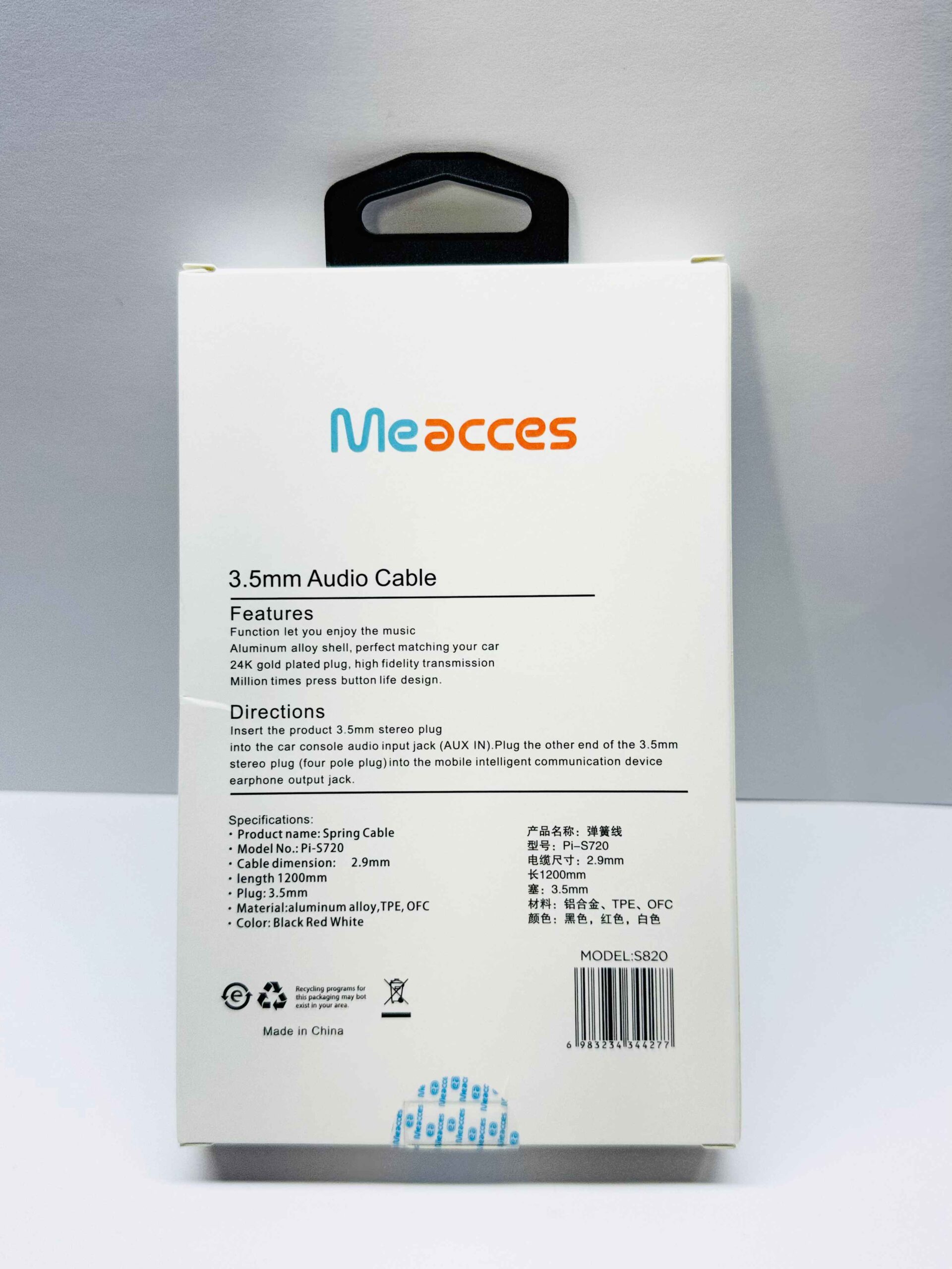 کابل AUX می اکسس مدل S820، گزینهای ایدهآل برای انتقال صدای گوشی، تبلت یا سایر دستگاهها به اسپیکر و سیستم صوتی است. این کابل با طراحی مقاوم و اتصال پایدار، تجربهای بدون نویز و با کیفیت بالا ارائه میدهد.